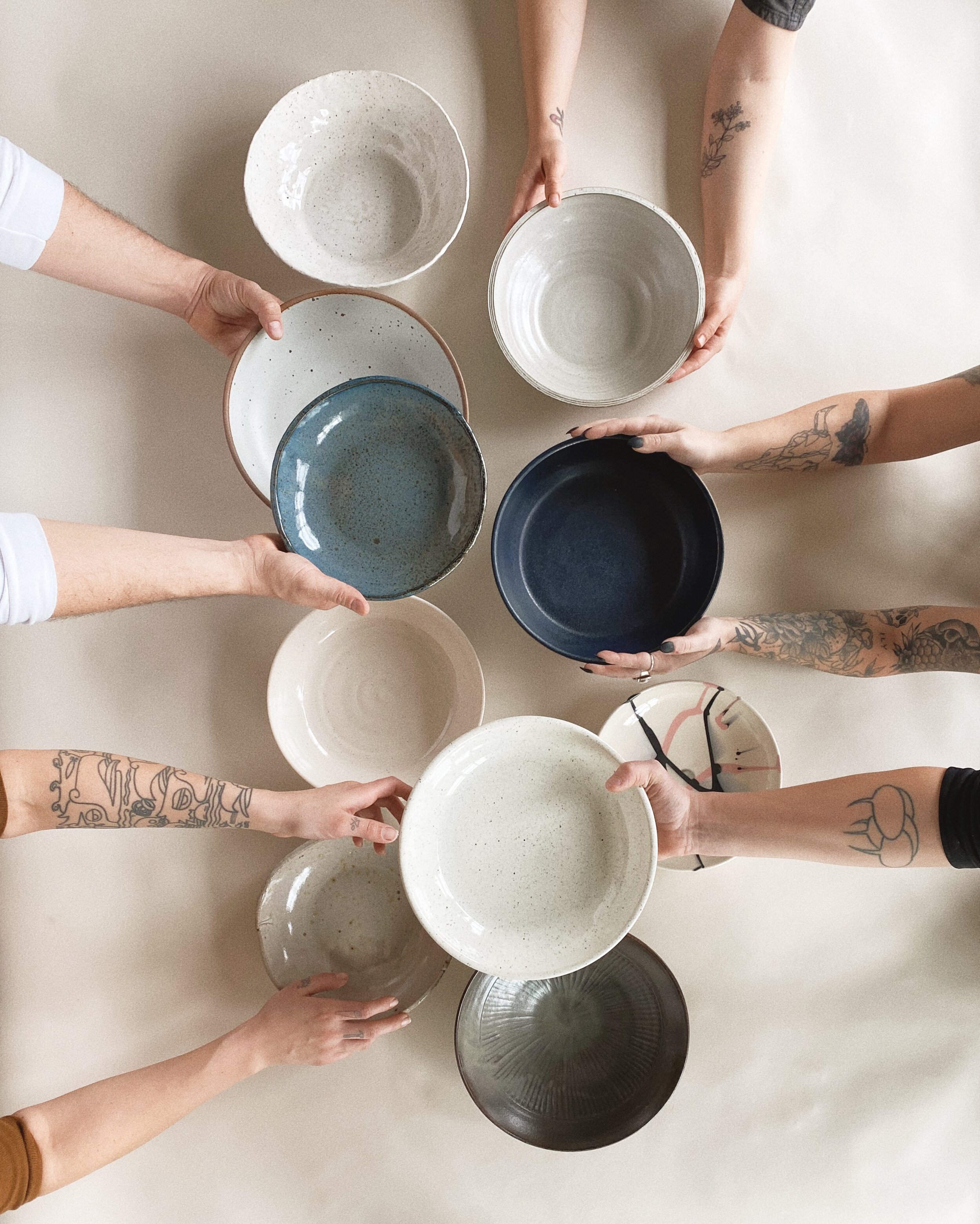 Each bowl is handmade by a ceramicist we love and admire, it will be a large shallow pasta bowl that could be used as a serving bowl in your home for years to come. You will walk away with a full belly, a new bowl and the knowledge that your money is going to a good place.